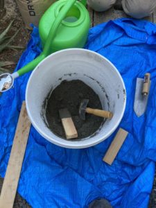 砂・セメントはあらかじめ出来たもので水を混ぜて作成。