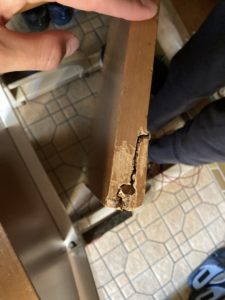 木工用のエキシポパテで型を形成し、回転ピンを取り付けて修理させていただきました。