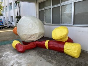 先日は私の母校(園)である幼稚園様のアンパンマン修復作業をさせていただきました。